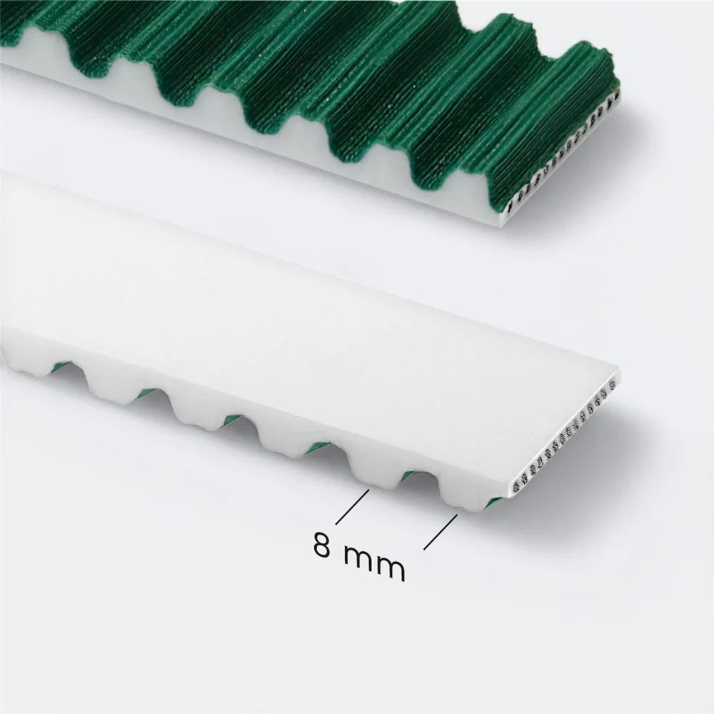 RPP8 Polyurethan-Zahnriemen haben eine zuverlässige Übertragungsfähigkeit. Eine Nylonschicht kann auf der Zahnseite (NFT/ PAZ) und auf der Rückseite (NFB/ PAR) angebracht werden. Auf der Rückseite können verschiedene Beschichtungen aufgebracht werden, um unterschiedliche Aufgaben zu lösen. Wir können auch Mitnehmer auf dem Riemenrücken montieren, um verschiedene Transportaufgaben zu lösen.